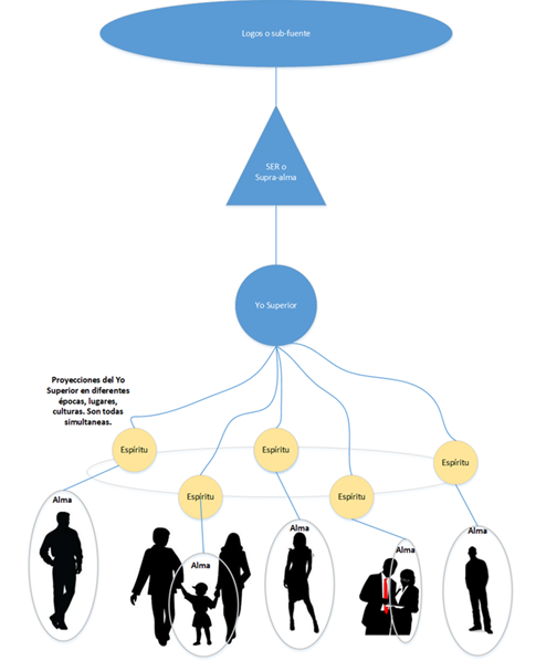 esquema muestra las múltiples proyecciones del SER a través del Yo superior
