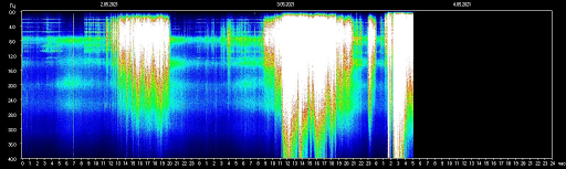 Aquí está la gráfica de la Resonancia Schumann de hoy, y de ayer y de antier....